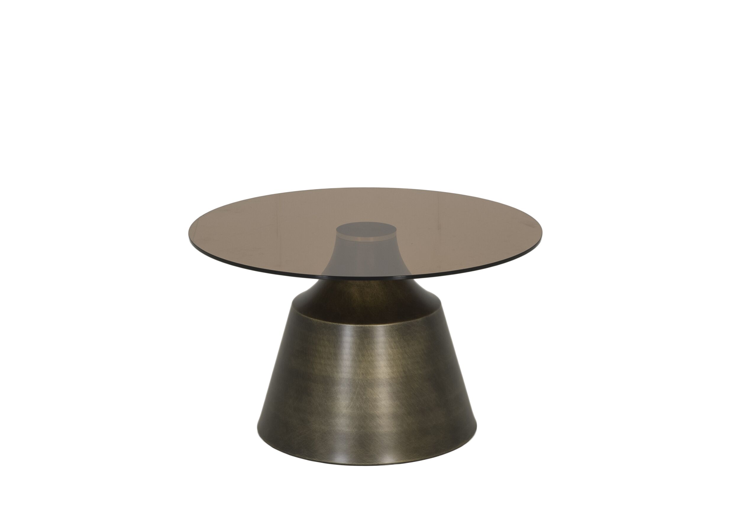 Table basse Ø70cm - verre & métal - brun & bronze