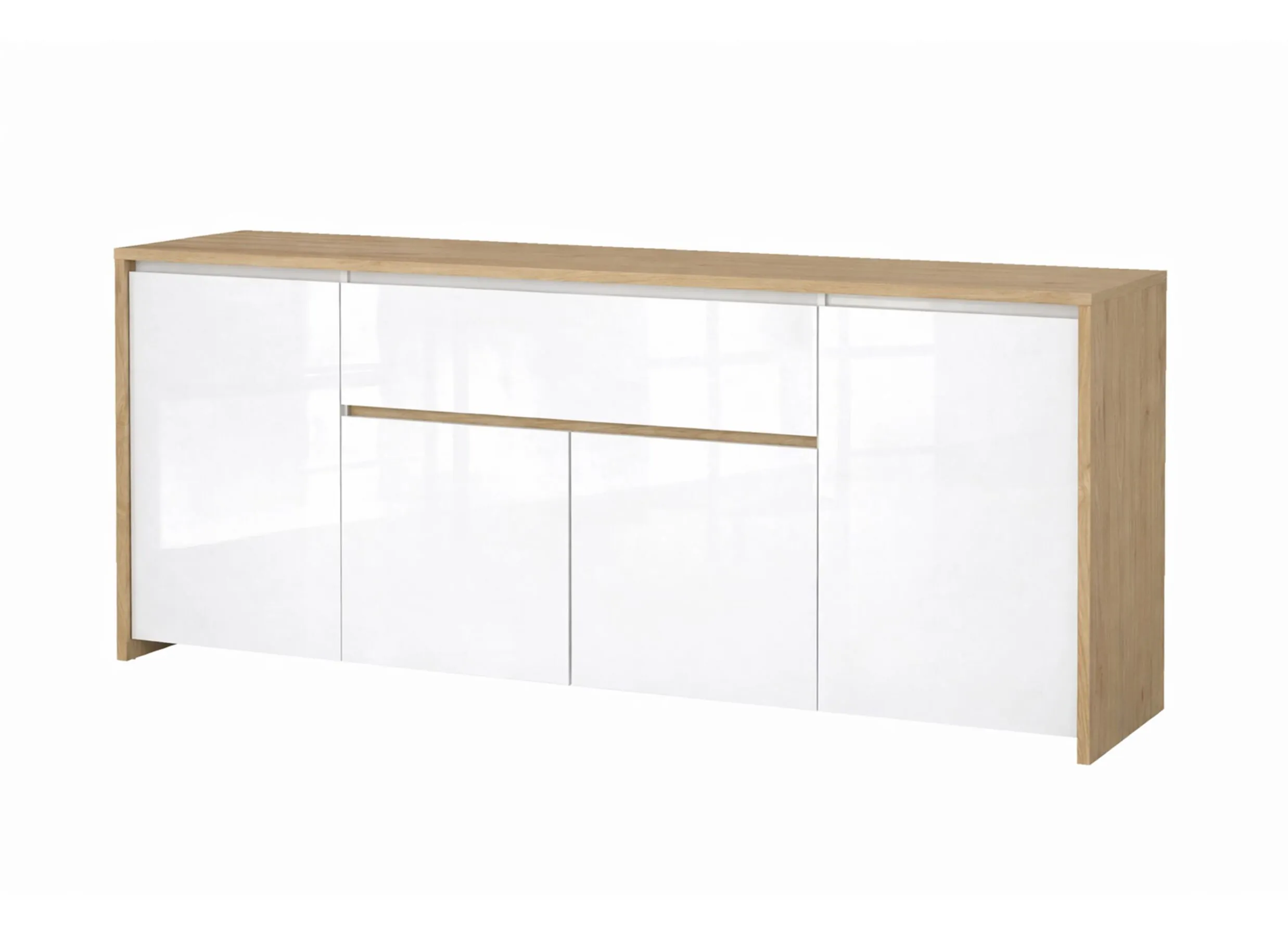Dressoir Next 197cm - melamine - glanzend wit & jackson hickory