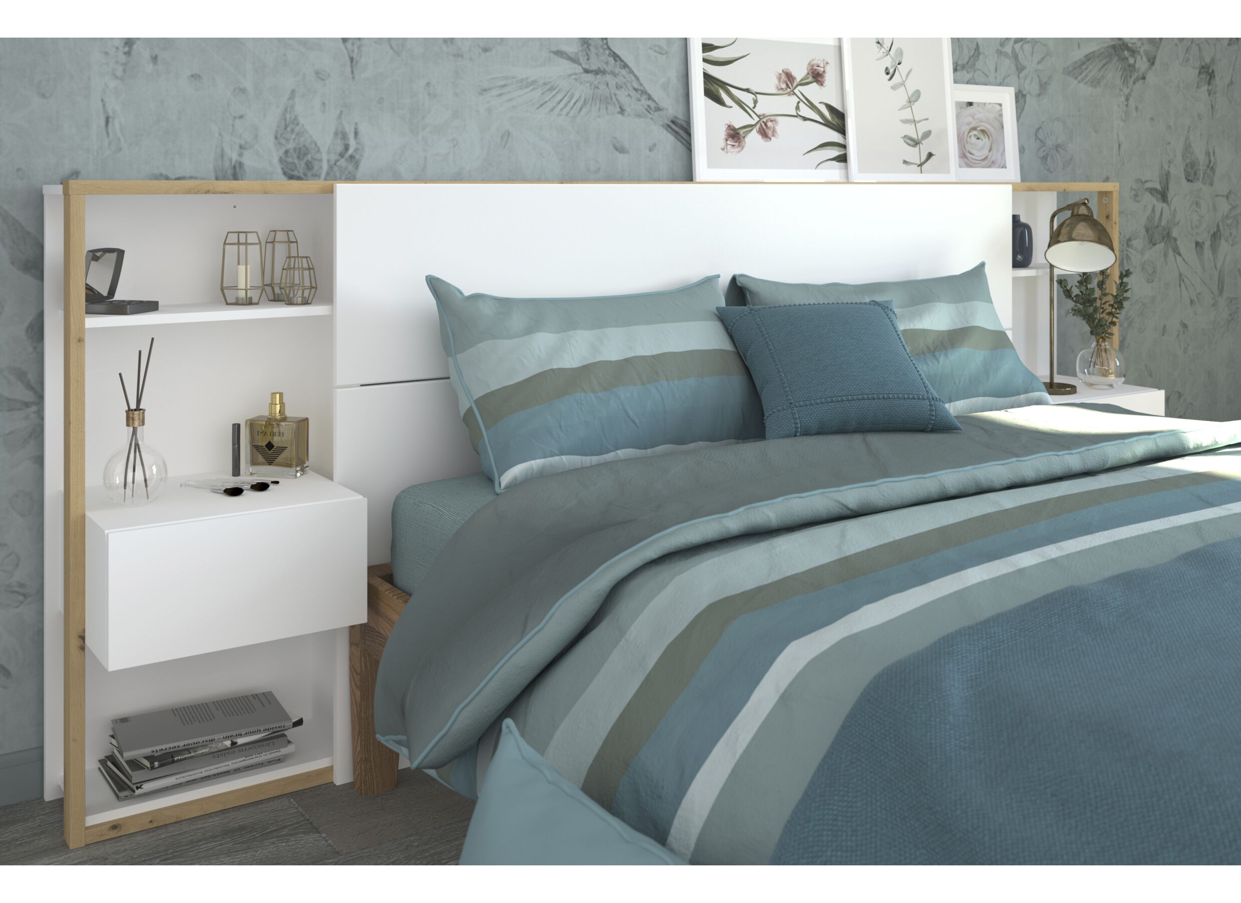 170cm tussen de nachttafels, geschikt voor bedden B140 en B160.